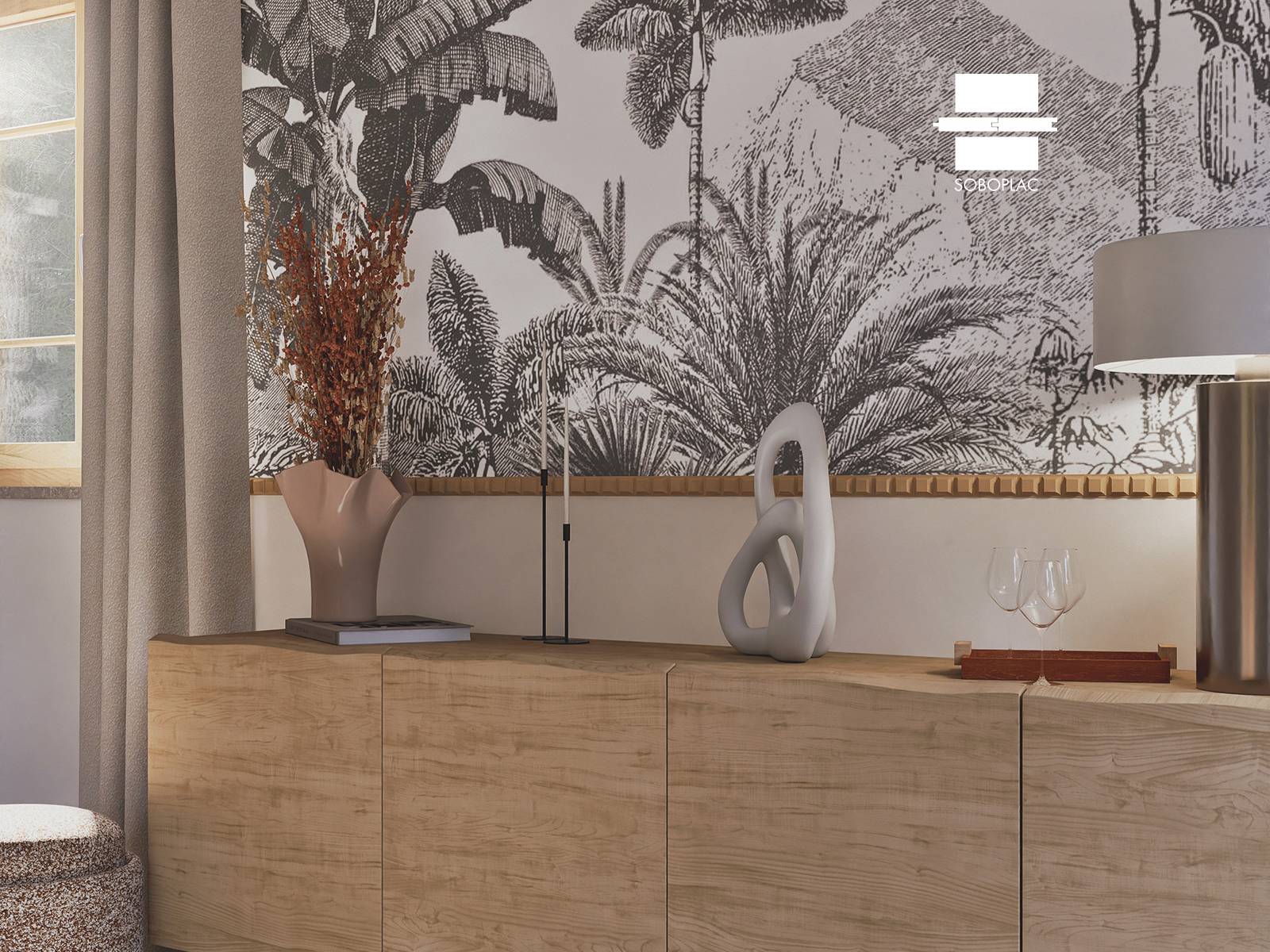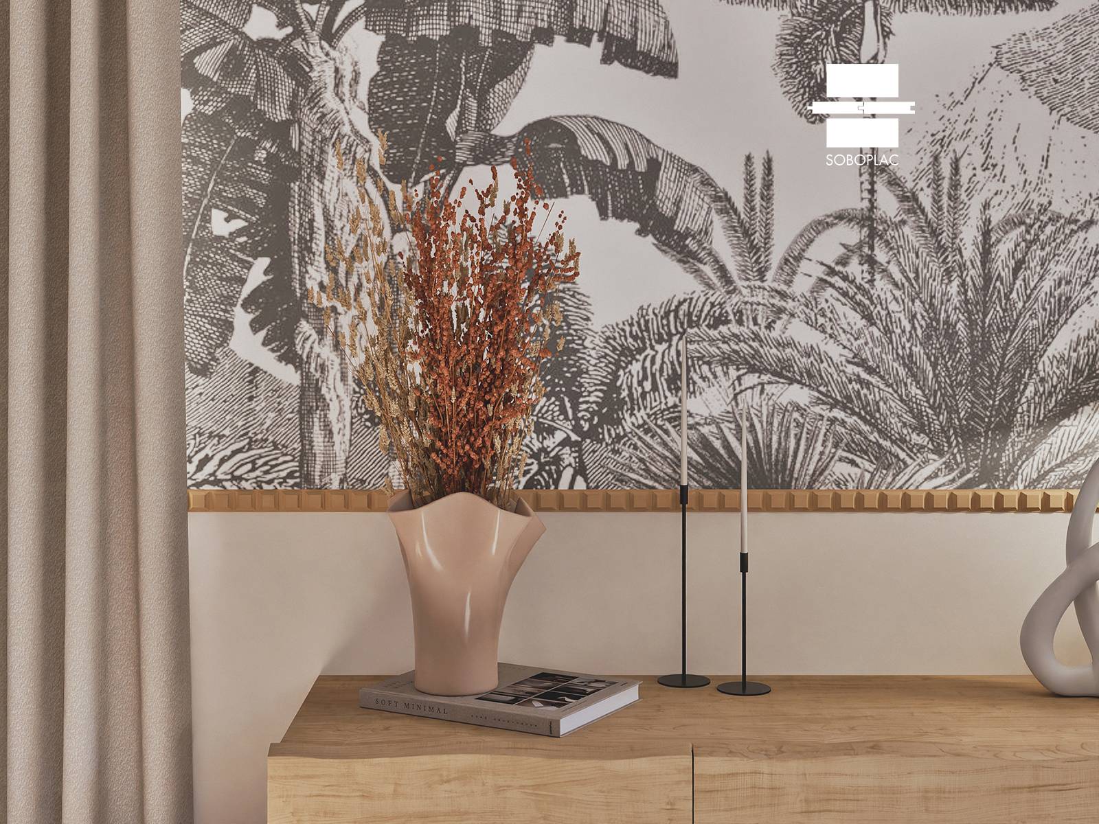 Son profil sculpté en séquences régulières évoque des arches successives, créant un jeu de relief à la fois géométrique et décoratif. Ce motif singulier apporte de la profondeur et une touche de caractère à vos murs, qu’il s’agisse d’un aménagement moderne ou d’une décoration plus classique.